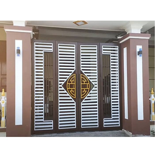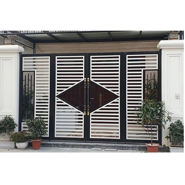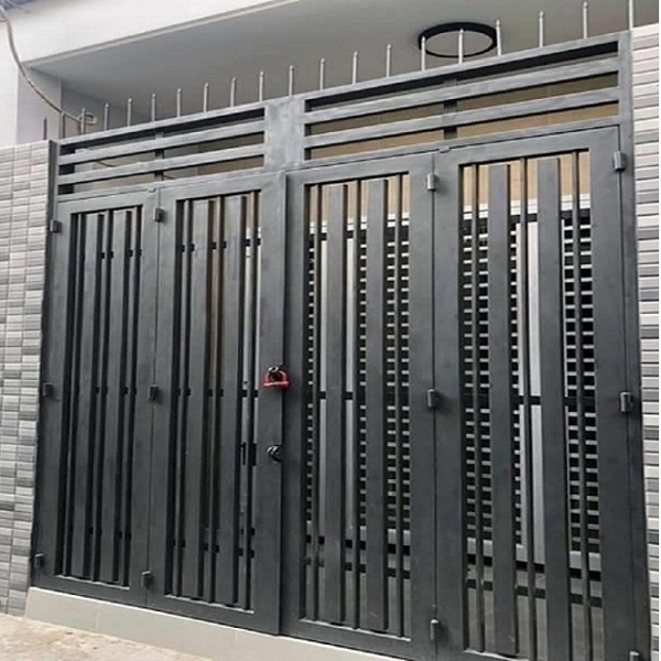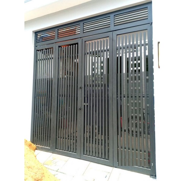 Thiết kế linh hoạt: Từ kiểu đơn giản, hiện đại đến hoa văn cổ điển, cửa sắt hộp 4 cánh có thể tùy biến theo nhu cầu: pano kín, kết hợp nan sắt, kính cường lực hoặc hoa văn CNC. Đặc biệt, mẫu cửa 4 cánh giúp lối đi rộng rãi, phù hợp nhà có gara ô tô.